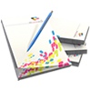 Blöcke ohne Deckblatt sind aus weißem Naturpapier (80 g/qm). Man kann auf Ihnen hervorragend schreiben und stempeln. Ihr Logo oder Ihren Text können Sie vollfarbig (4/4) auf einer oder beiden Seiten anbringen (4/0 oder 4/4); einseitig sind Sonderfarben wie Gold, Silber, Pantone- oder HKS-Farben möglich (5/0). Seitenanzahl und Auflage sind individuell bestimmbar.